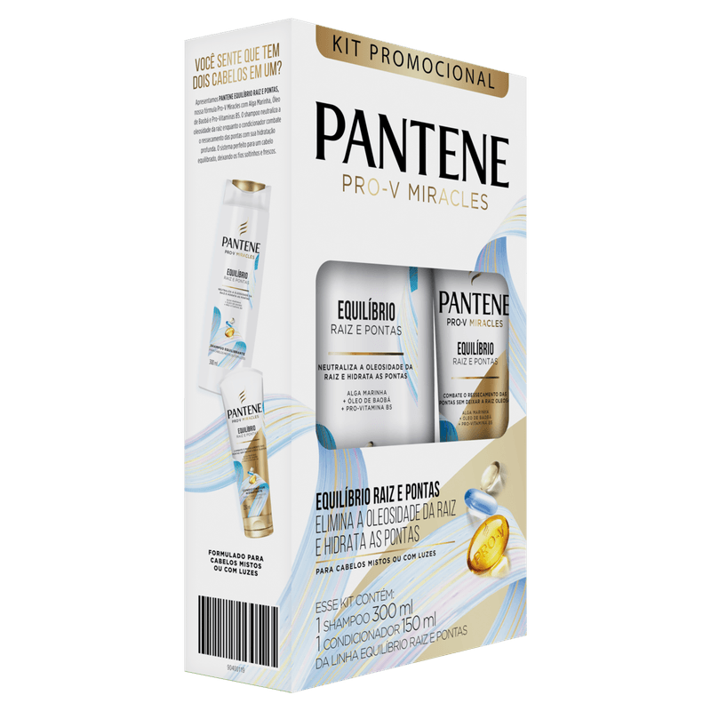 Kit Shampoo 300ml + Condicionador 150ml Pantene Equilíbrio Raiz e Pontas