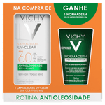Kit Protetor Solar Facial Aqua-Fluido Antioleosidade FPS 60 Vichy Capital Soleil UV-Clear 40g Grátis Gel de Limpeza Profunda Normaderm 50g