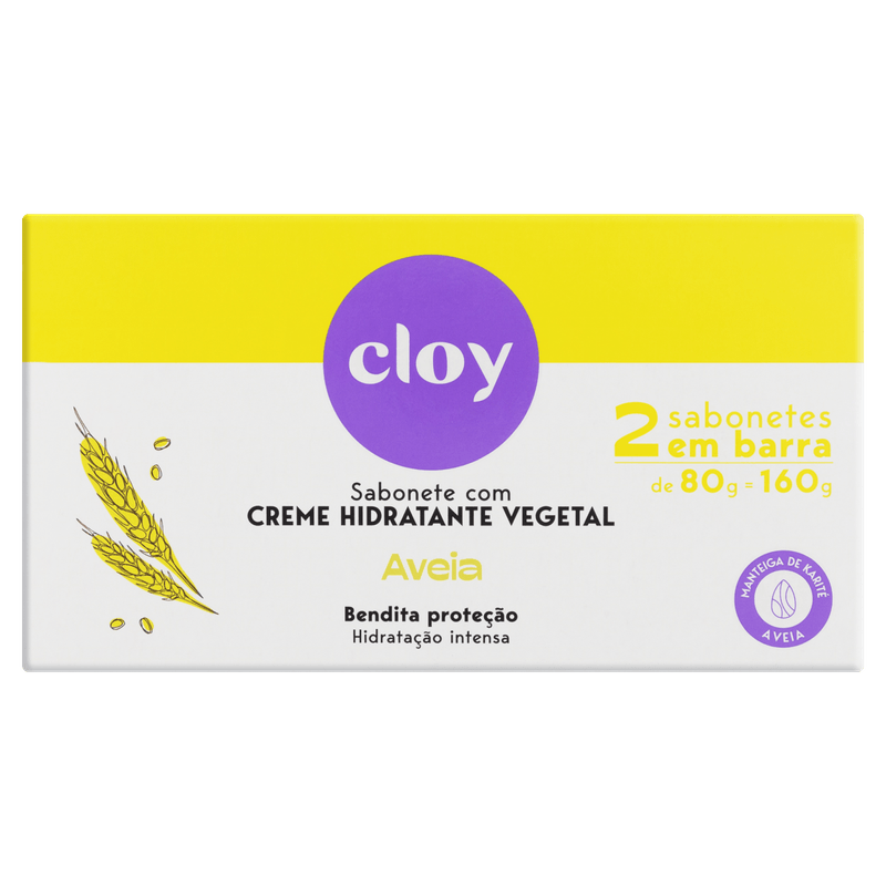Pack Sabonete Barra Hidratante Vegetal Aveia Cloy Bendita Proteção Caixa 2 Unidades 80g Cada