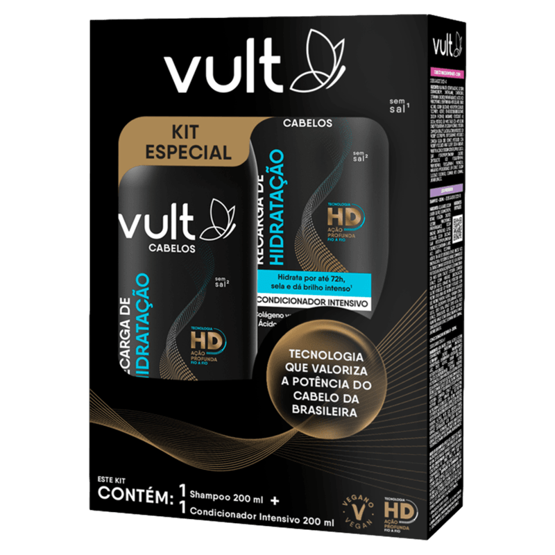 Devolva o brilho, a maciez e a saúde dos seus fios com o poder do Ácido Hialurônico e do Colágeno Vegetal! O Kit Vult Recarga de Hidratação promove uma hidratação intensa e duradoura, combatendo o ressecamento e deixando seus cabelos visivelmente mais macios, leves e cheios de vida desde a primeira aplicação.
