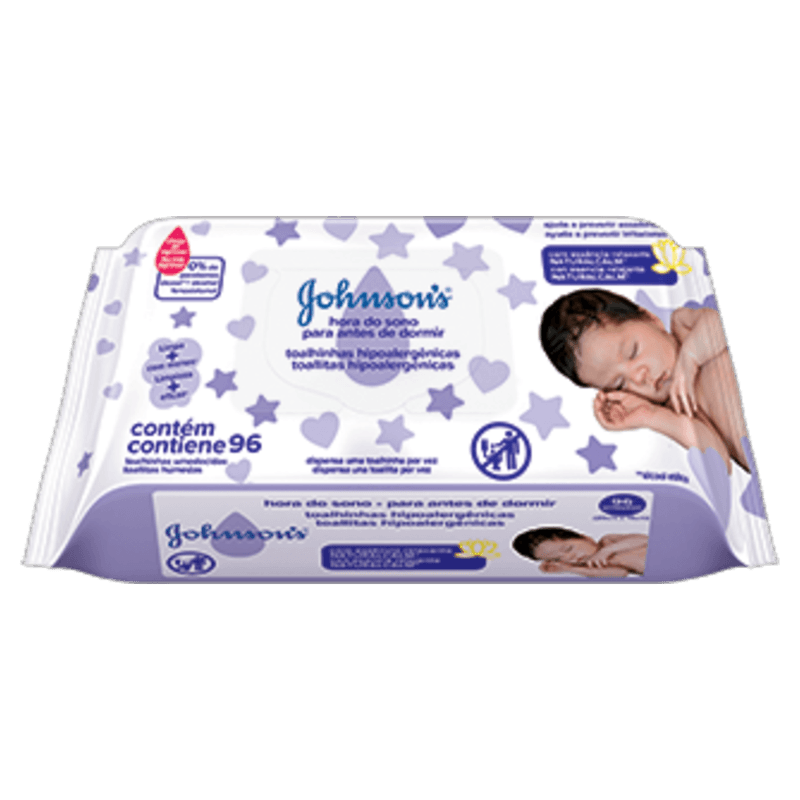 As Toalhinhas Umedecidas Johnson's Baby Hora do Sono são lenços umedecidos infantis apresentados em embalagem com 96 unidades, indicados para bebês e crianças. Desenvolvidas para a higiene suave da pele, possuem a exclusiva essência Natural Calm, que proporciona uma sensação relaxante, além de contar com propriedades suavizantes e a fórmula Chega de Lágrimas, que permite o uso seguro no rosto sem causar ardência nos olhos.