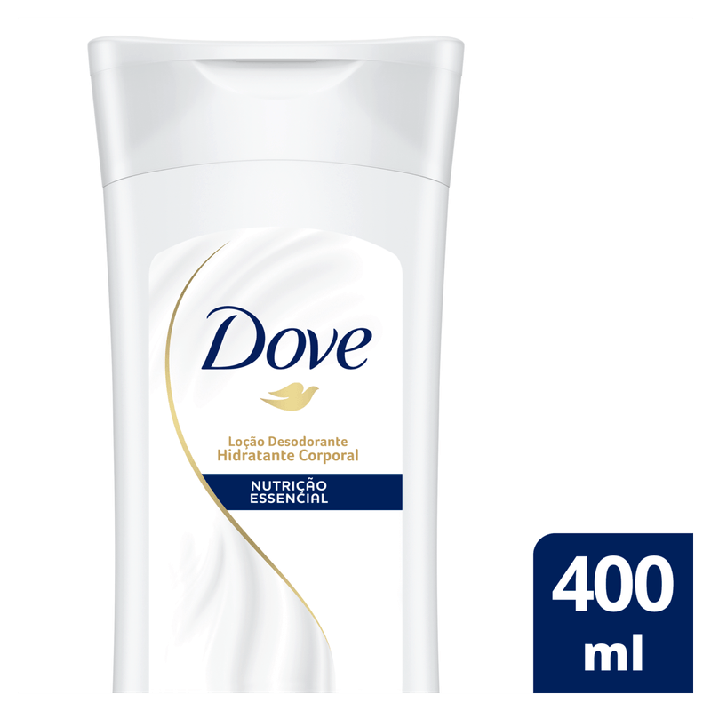 É verdade o que dizem – a beleza vem de dentro. A Loção Desodorante Hidratante Corporal Dove Nutrição Essencial foi desenvolvida para agir de uma forma mais profunda, hidratando além da superfície da pele. Dove Nutrição Essencial possui uma fragrância suave e deixa a pele mais bonita e macia. Enriquecido com NutriDUO, nosso complexo de hidratação exclusivo que combina nutrientes naturais da pele com um rico óleo natural, ajudando a manter até as camadas mais profundas nutridas enquanto previne a perda de hidratação da superfície da pele. Com rápida absorção e fragrância suave, esta loção desodorante hidratante corporal Dove fornece nutrição instantânea, promovendo suavidade e maciez para sua pele ao longo do dia. Como usar: Aplique a loção diariamente de maneira generosa na pele, aproveitando a fragrância de Dove Nutrição Essencial. Enquanto massageia, tenha um cuidado especial com os joelhos, cotovelos e outras áreas do corpo que são propensas a se ressecarem mais facilmente. A Loção Desodorante Hidratante Corporal Dove Nutrição Essencial está disponível nos tamanhos 200 ml e 400 ml e é dermatologicamente testada. Conheça e desperte os seus sentidos! Dove é certificada Cruelty-Free pela PETA, sendo assim, não realizamos e nem realizaremos testes em animais em nenhum lugar do mundo.