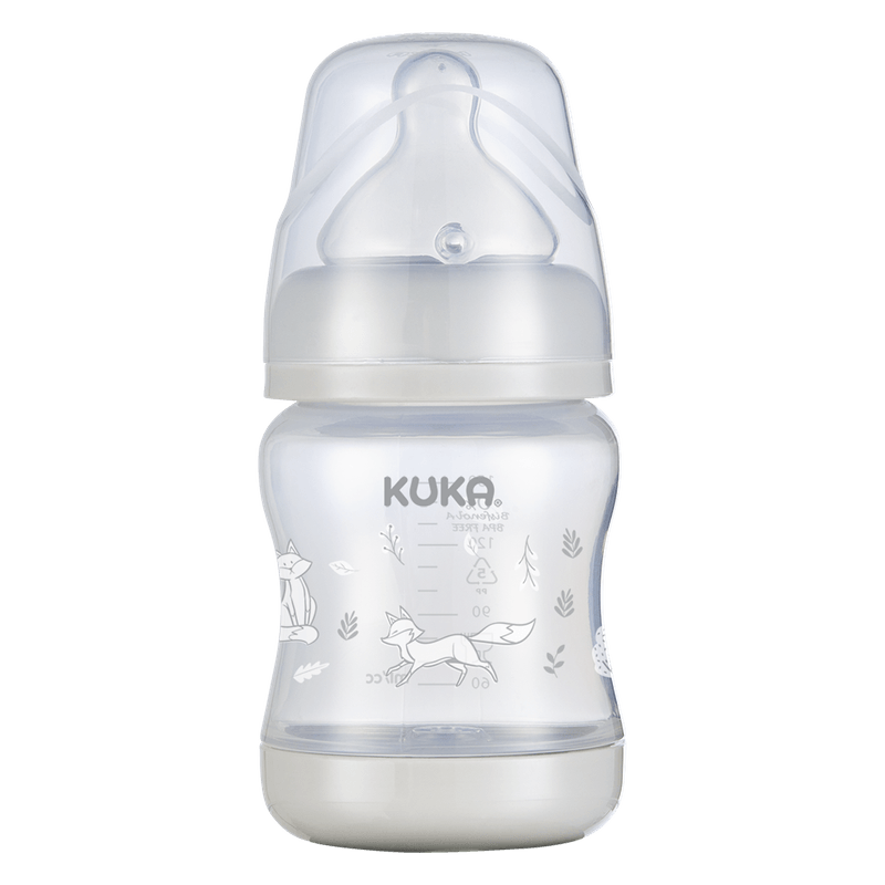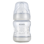 A Mamadeira Elegance Plus Orto 150ml da Kuka, possui uma válvula de silicone que se encaixa na base do frasco, desenvolvida para dominuir os desconfortos durante a alimentação, pois evita a formação de bolhas de ar no líquido. A válvula também gera um fluxo suave e evita que a criança engula ar prevenindo as cólicas.
