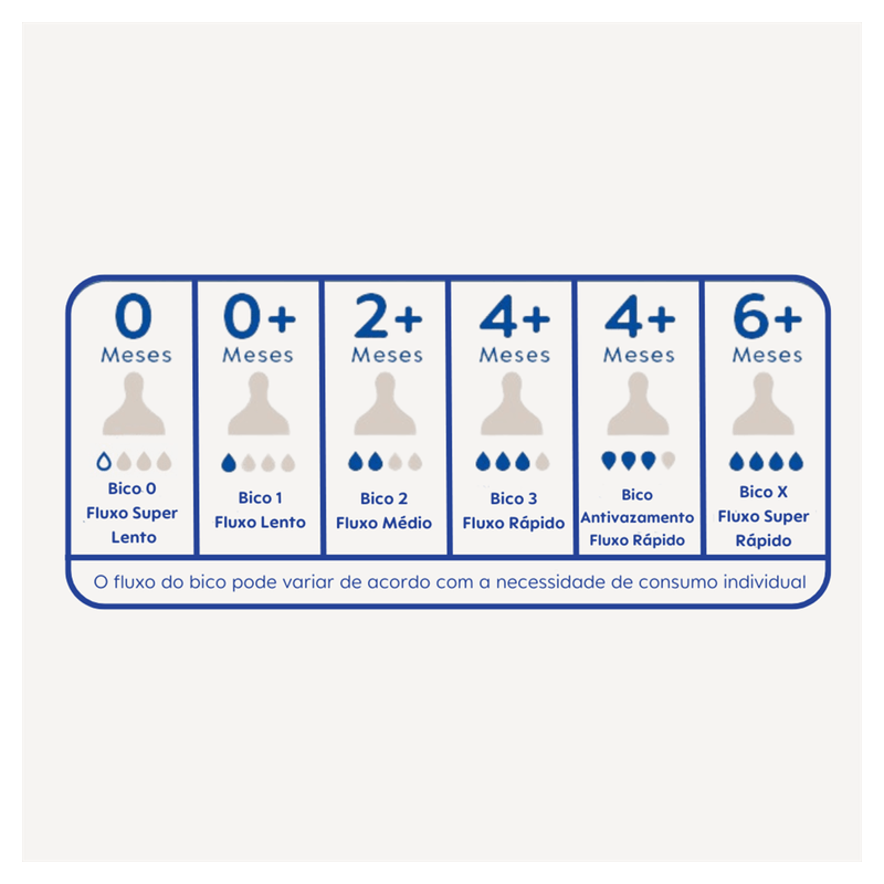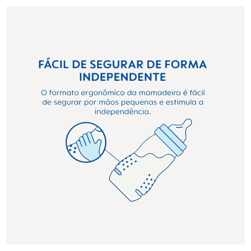 • Características: Bocal largo, tampa antivazamento, sistema anticólica, design ergonômico