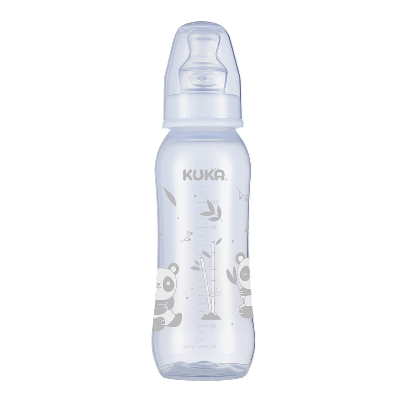 A Mamadeira Natural Color Orto 2 da Kuka possui gargalo ultra-higiênico sem bordas ou rebarbas cortantes e não retém resíduos alimentares.