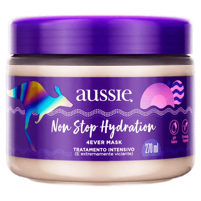 A Máscara Aussie Non Stop Hydratation oferece um tratamento intensivo para uma hidratação de longa duração em apenas uma aplicação semanal, protegendo e reparando as pontas. Sua fórmula é vegana, de baixo pH, cruelty free e livre de sal.