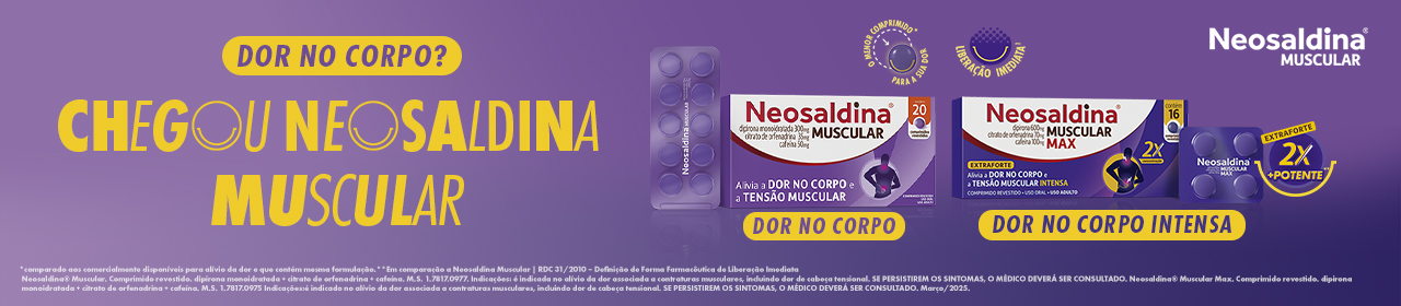 30% OFF na 2ª Unidade-7% Analgésico Neosaldina Dipirona Caixa 30 drágeas R$ 47,19R$ 43,89Em até 1x de R$ 43,89 sem juros-1+Comprar
