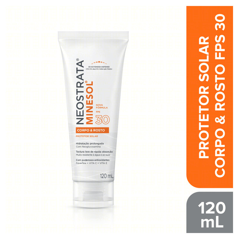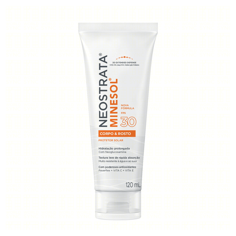 O Protetor Solar Corpo e Rosto FPS 30 Neostrata Minesol é um fluido hidratante indicado para todos os tipos de pele, inclusive as sensíveis. Apresenta textura leve, de rápida absorção, sem deixar resíduos brancos, e oferece proteção contra raios UVA, UVB, luz visível, além de resistir à água e ao suor por até 80 minutos.