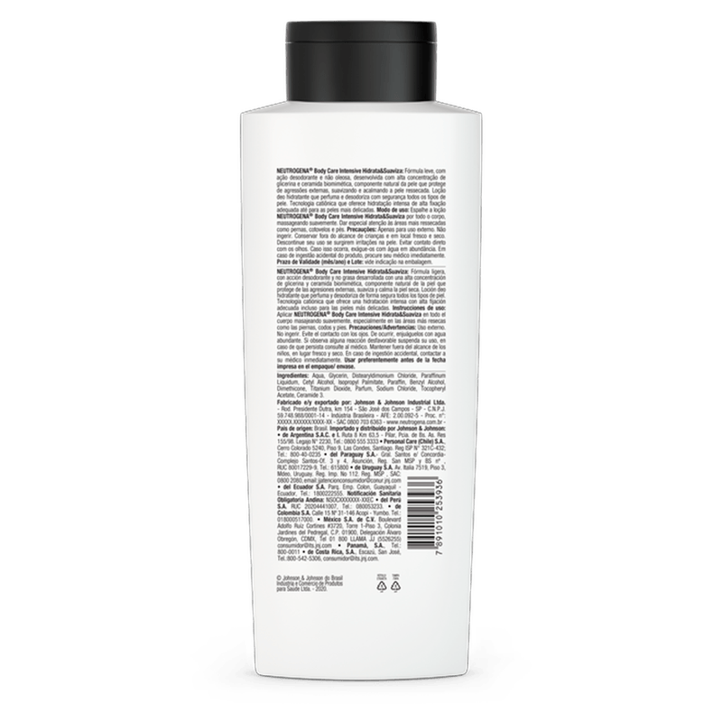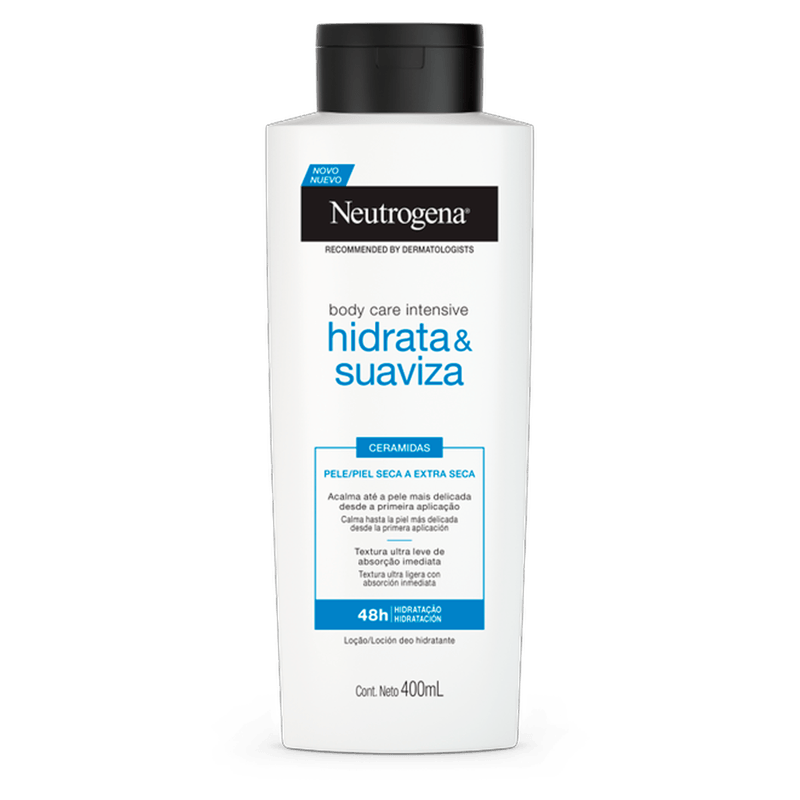 O Hidratante Corporal NEUTROGENA® Body Care Intensive Hidrata e Suaviza é ideal para peles secas e extra secas, proporcionando hidratação intensa e suavização desde a primeira aplicação. Com uma fórmula avançada que contém alta concentração de Ceramidas, este hidratante acalma até as peles mais delicadas, protegendo contra agressões externas. Sua textura ultraleve e não oleosa garante absorção imediata, enquanto a hidratação se mantém por até 48 horas. É uma loção que também perfuma e desodoriza, sendo adequada para todos os tipos de pele. Para melhores resultados, aplique especialmente nas áreas mais ressecadas, como pernas, cotovelos e pés. Mantenha fora do alcance de crianças e evite contato com os olhos. Em caso de irritação, suspenda o uso e consulte um médico.