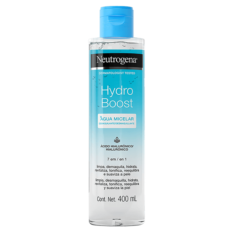 A Água Micelar Demaquilante Neutrogena Hydro Boost 400ml é ideal para peles normais a secas, oferecendo limpeza eficaz e hidratação por até 24 horas. Com tecnologia Tripla Micelar e ácido hialurônico, remove maquiagem, inclusive à prova d'água, enquanto revitaliza, tonifica, reequilibra e suaviza a pele sem agredir sua barreira natural.