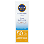 O NIVEA SUN Protetor Solar Facial Beauty Expert com Cor FPS 50 é um protetor solar em creme com cor, indicado para todos os tipos de pele, que oferece alta proteção contra os raios UVA e UVB, ajudando a prevenir queimaduras solares e uniformizar o tom da pele.