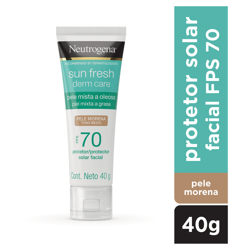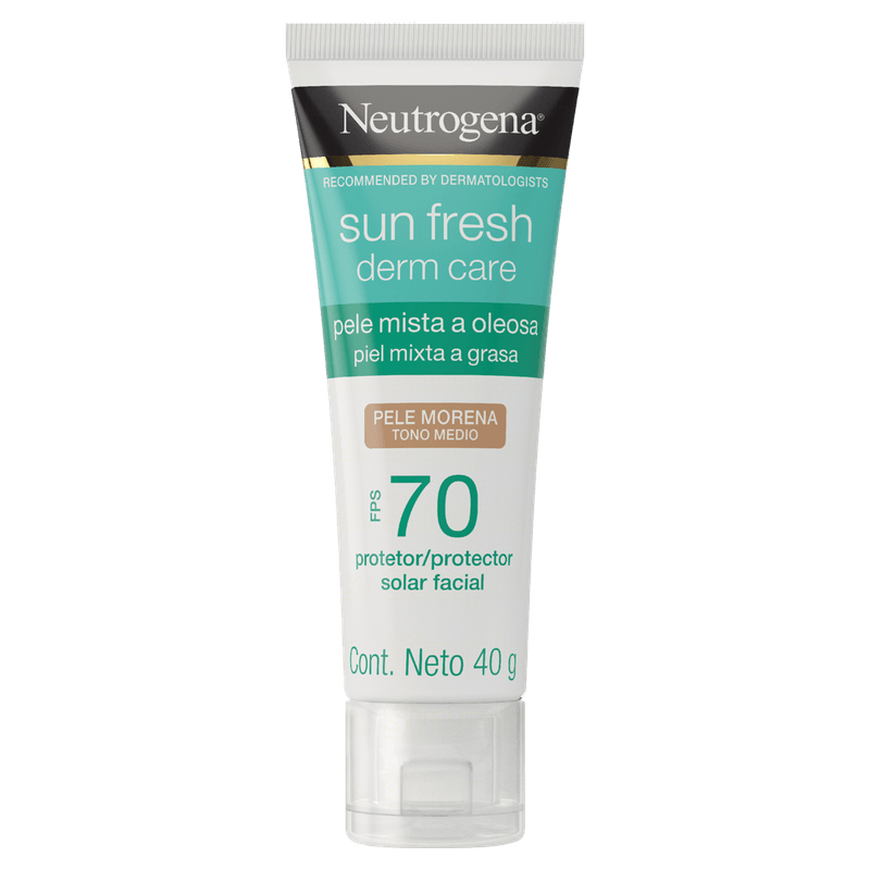 O Protetor Solar Facial Neutrogena Derm Care Pele Morena FPS 70 é um protetor solar em creme indicado para peles mistas a oleosas, oferecendo alta proteção contra os raios UVA, UVB e luz visível. Sua principal finalidade é proteger a pele, uniformizar o tom e controlar a oleosidade com efeito matte de longa duração.