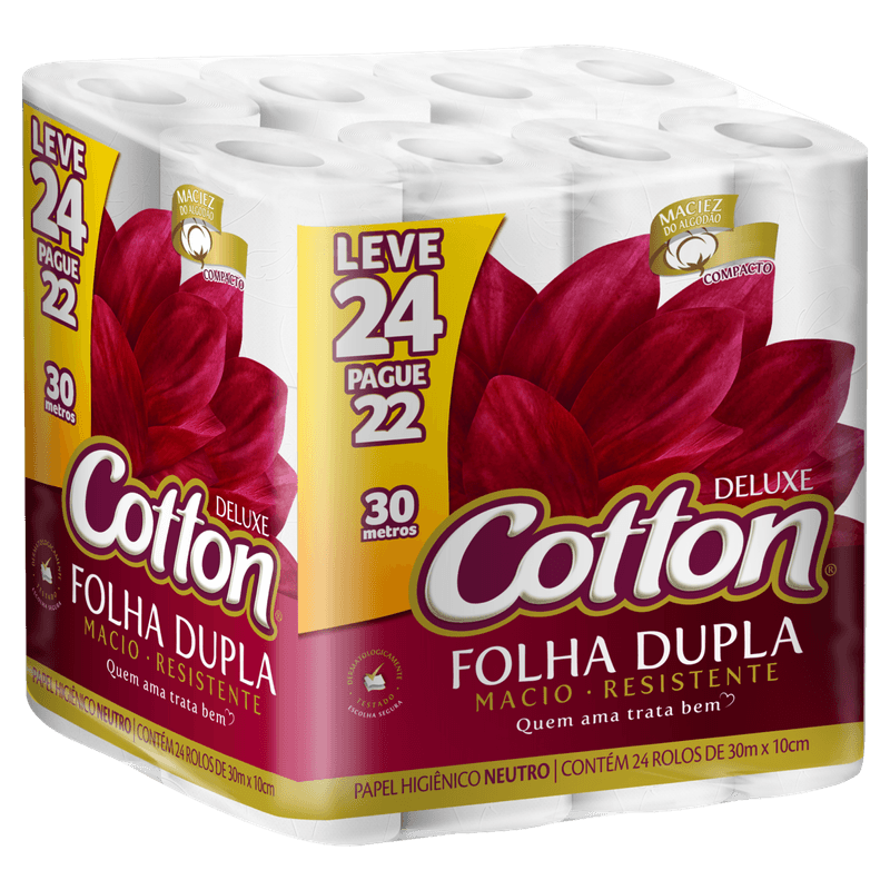 Papel Higiênico Cotton Folha Dupla Compacto - Leve 24 Pague 22