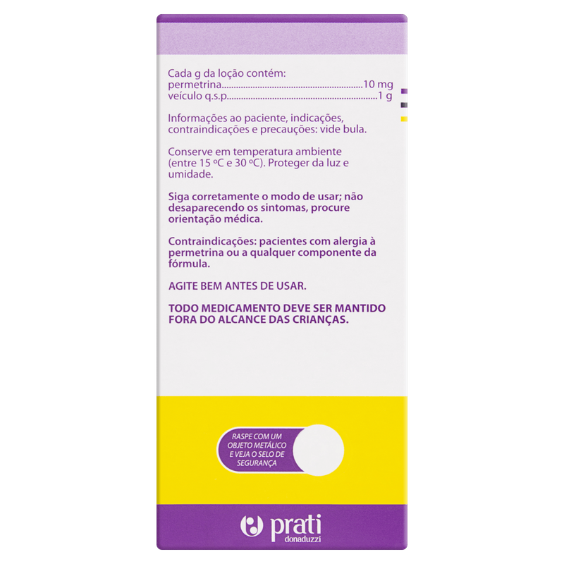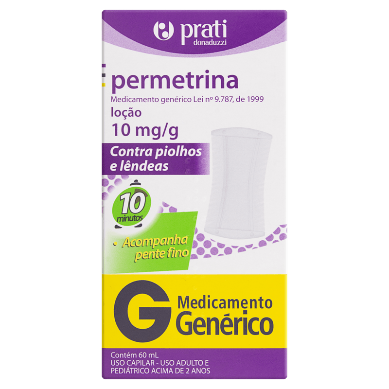 Este produto é contraindicado para crianças menores de 2 anos e pessoas com alergia à permetrina ou componentes relacionados. A loção possui textura leve e é de uso tópico capilar, com volume de 60 ml. Vendido sob prescrição médica, é indicado para quem busca um tratamento confiável e rápido contra piolhos e lêndeas, com a garantia de um medicamento genérico de qualidade da Prati Donaduzzi.