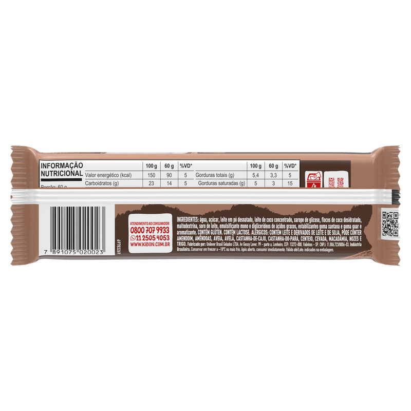 • Pode conter traços de amendoim, castanhas, aveia, centeio, cevada, macadâmia, nozes e trigo.