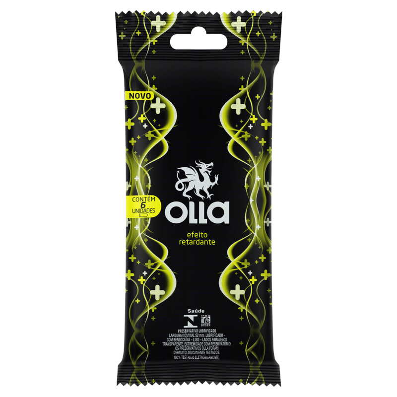 Preservativo Masculino Lubrificado Efeito Retardante Olla Pacote 6 Unidades