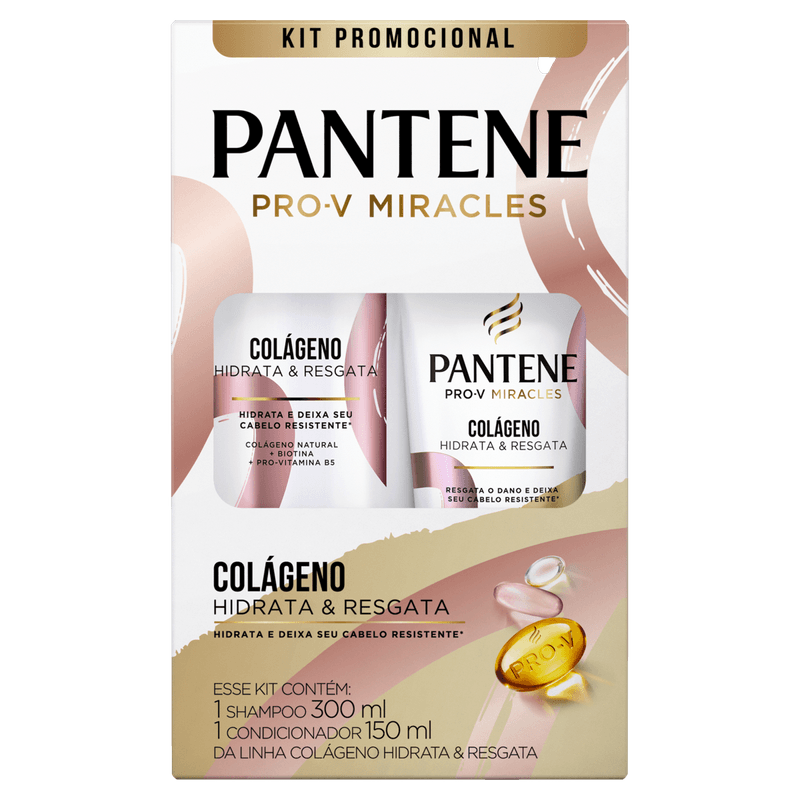Kit Shampoo 300ml + Condicionador 150ml Pantene Colágeno Hidrata & Resgata