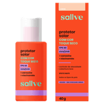 O Protetor Solar Facial Sallve Toque Seco com Cor FPS 60, na cor 10 e embalagem de 40g, é um protetor solar em creme com cor que oferece alta proteção contra os raios UVA e UVB, além de proteger contra luz azul, infravermelho e poluição. Sua principal finalidade é proteger a pele enquanto uniformiza o tom, controla a oleosidade e proporciona acabamento mate com toque seco.