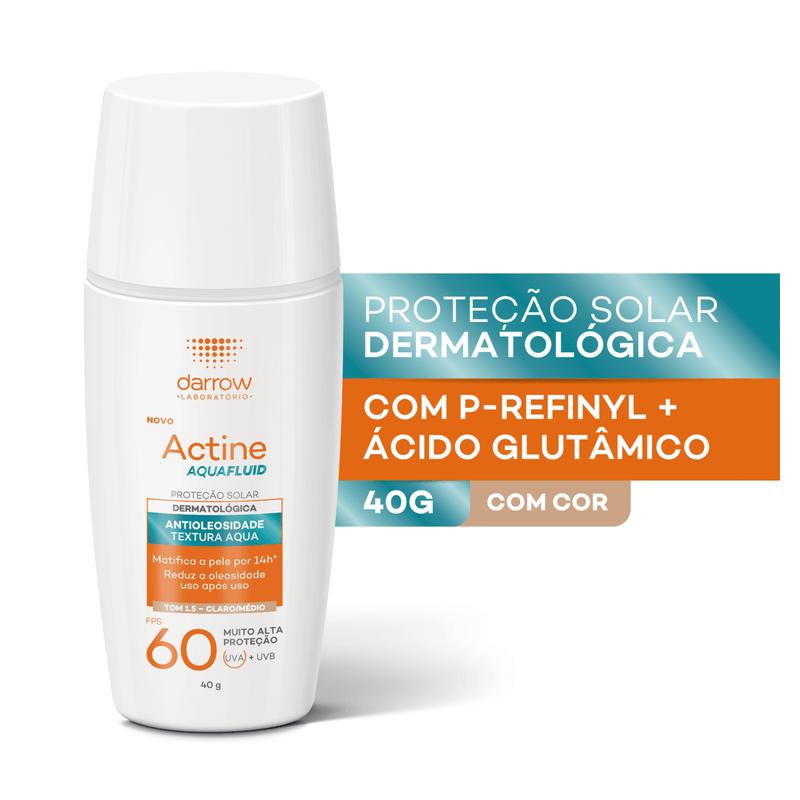 O Protetor Solar Facial Actine Aquafluid Cor Médio FPS 60 é um protetor solar em textura fluida, desenvolvido para peles oleosas e acneicas brasileiras. Oferece alta proteção contra os raios UVA e UVB, com toque seco e ação matificante que dura até 14 horas.