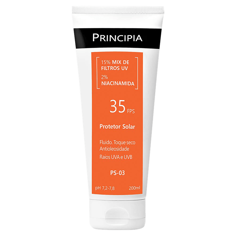 Protetor Solar Corporal PS-03 FPS 35 Principia garante proteção completa contra os raios UVB, UVA, luz visível e luz azul. Com textura fluida e toque seco, é rapidamente absorvido pela pele, sem deixar resíduos brancos. Sua fórmula contém 15% de filtros UV e 2% de Niacinamida, que hidrata e melhora a textura da pele, proporcionando luminosidade e um toque suave. Ideal para uso diário em todos os tipos de pele.