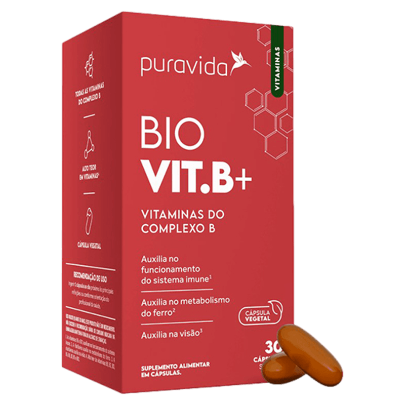 Com ação voltada para o suporte ao metabolismo energético e ao funcionamento do sistema imunológico, o Suplemento Vitamina B Puravida é indicado para adultos que desejam manter a saúde geral e o bem-estar. Sua fórmula contém amido, água purificada, glicerina, óleo de coco, azeite de oliva e as vitaminas do complexo B em suas formas ativas, apresentadas em cápsulas vegetais sem sabor e sem tarja. O produto possui registro na Anvisa (70422/2023) e é vendido sem necessidade de prescrição médica. Este suplemento não substitui uma alimentação equilibrada e seu consumo deve ser orientado por nutricionista ou médico.