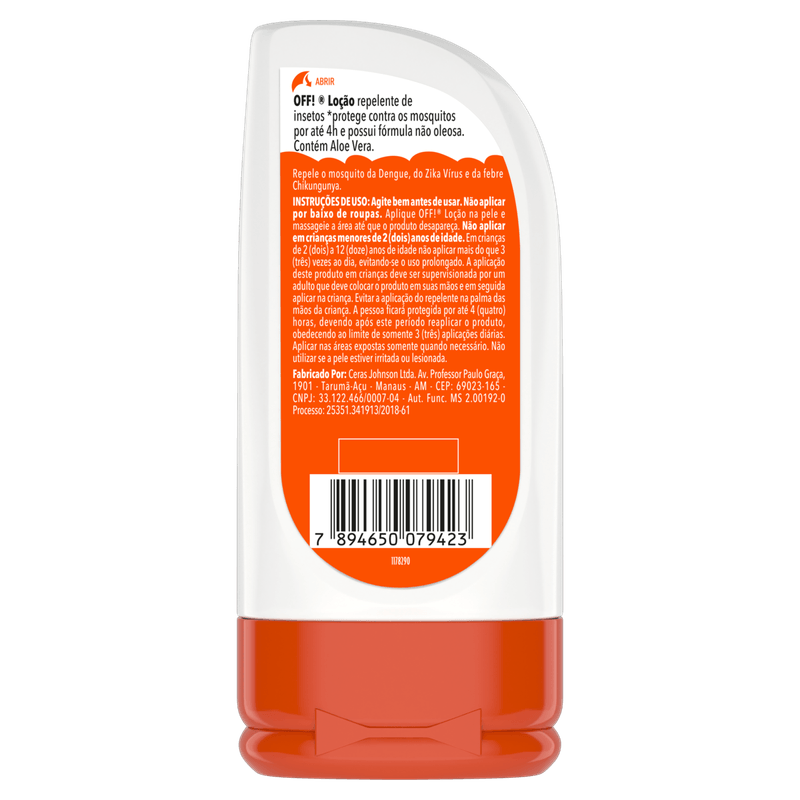 Indicada para adultos e crianças a partir de 12 anos, OFF Family é uma loção repelente para insetos que garante até 4 horas de proteção contra mosquitos, inclusive contra o Aedes Aegypti, mosquito que pode transmitir o Zika Vírus, a Dengue, a Febre Chikungunya e a Febre Amarela.