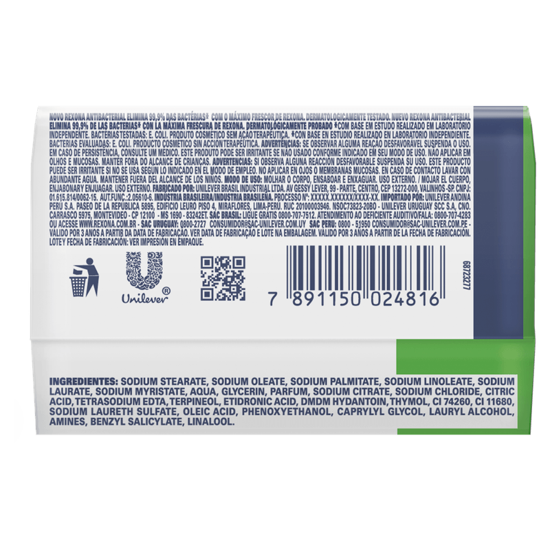 Todas as variantes de Rexona são exclusivamente formuladas para proporcionar uma sensação única de refrescância durante e após o banho, para você sentir suas energias recarregadas. Além disso, apresentam um toque suave no banho, pois contém glicerina na fórmula, um ingrediente hidratante para a pele.