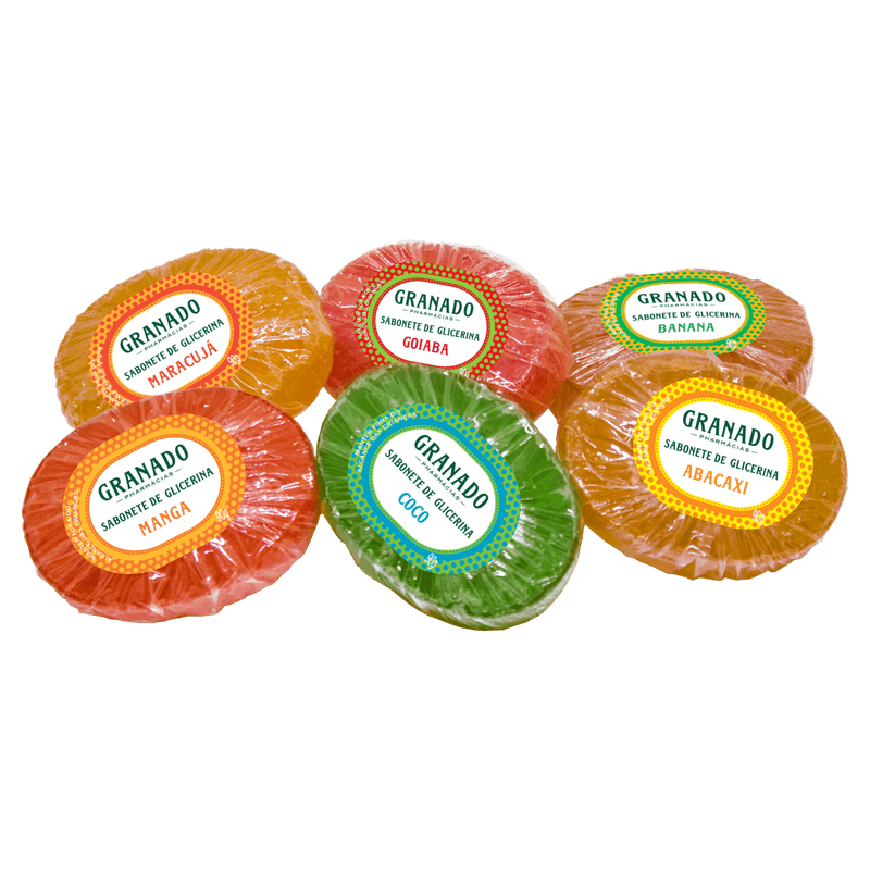 Kit Sabonete Barra de Glicerina Abacaxi + Banana + Manga + Goiaba + Coco + Maracujá Granado Frutas Tropicais 90g Cada
