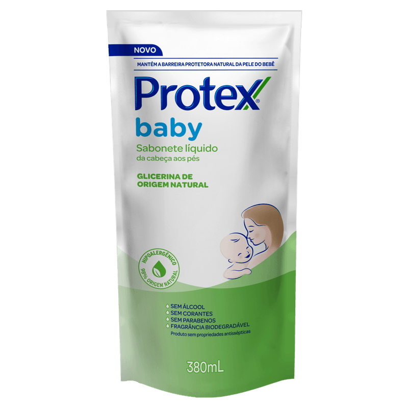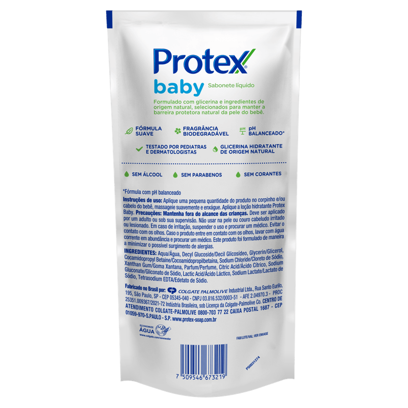 O Sabonete Líquido da Cabeça aos Pés Protex Baby é ideal para a higiene da pele infantil, proporcionando proteção e cuidado com sua fórmula suave. Com glicerina natural, este sabonete é dermatologicamente testado e pediátrico, garantindo que não contém álcool, corantes ou parabenos, o que o torna seguro para a pele delicada dos bebês. Ele limpa de forma eficaz, mantendo a pele saudável e macia. O produto é apresentado em embalagem de 380ml, sendo uma opção prática e econômica para o dia a dia. Para usar, aplique uma pequena quantidade no corpo e/ou cabelo do bebê, massageie suavemente e enxágue. É importante manter o produto fora do alcance das crianças e utilizá-lo sob supervisão de um adulto. Em caso de irritação, suspenda o uso e consulte um médico. O sabonete é livre de substâncias agressivas e é uma escolha segura para a higiene infantil. Hipoalergênico e com pH balanceado, é perfeito para o uso diário, garantindo conforto e segurança durante o banho.