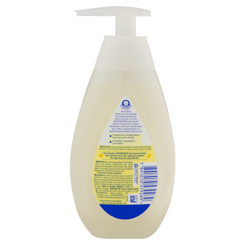 O sabonete líquido Johnsons Baby Recém Nascido pode ser usado desde o primeiro dia de vida, feito com algodão de verdade, hipoalergênico, fragrância suave. A espuma leve e aveludada como algodão deixa o toque mais suave e delicado. Tem ph fisiológico, é hipoalergênico e livre de corantes, parabenos, sulfatos e ftalatos. Deve ser aplicado por um adulto ou sob sua supervisão, evitando áreas de pele irritada ou lesionada