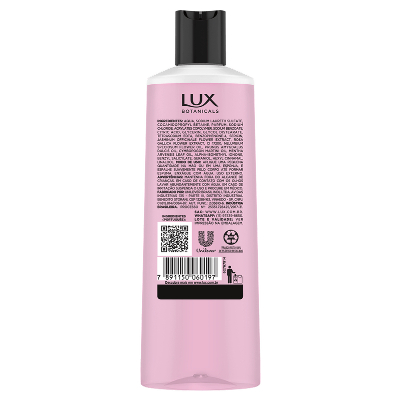Sabonete Líquido Lux Botanicals Rosas Francesas possui uma fragrância exclusiva, especialmente elaborada com óleos hidra florais que deixam sua pele macia e delicadamente perfumada. Produto não contém parabenos.