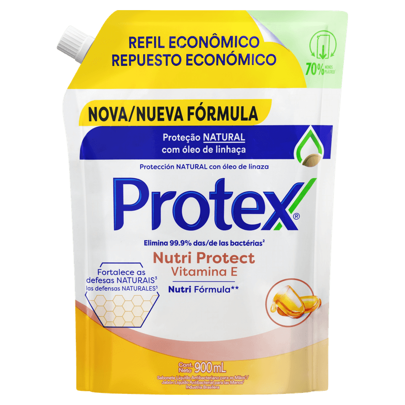 Sabonete Líquido para as Mãos Antibacteriano Protex Nutri Protect Vitamina E Sachê 900ml Refil Super Econômico