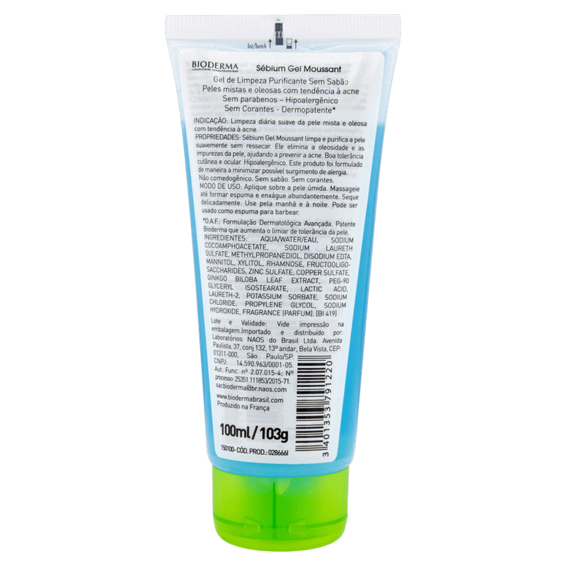 Modo de usar: Aplique o gel sobre a pele úmida do rosto, massageando suavemente em movimentos circulares. Enxágue completamente. Evite o contato com os olhos. Use diariamente para melhores resultados.