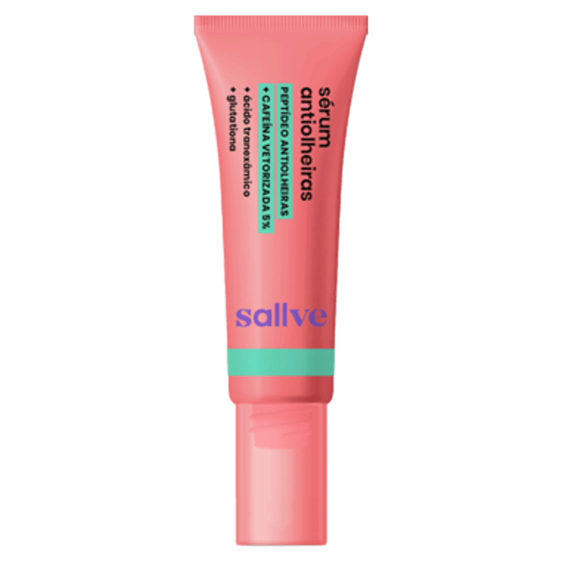 Sallve Sérum Antiolheiras é um tratamento intensivo para a área dos olhos que ajuda a reduzir olheiras vasculares e pigmentares, diminuir bolsas e inchaço, e suavizar linhas finas. Com peptídeo antiolheiras, cafeína vetorizada 5%, ácido tranexâmico e glutationa, sua fórmula promove uniformização do tom da pele, efeito antioxidante e luminosidade imediata. Ideal para uso diário, compatível com maquiagem e indicado para todos os tipos de pele.