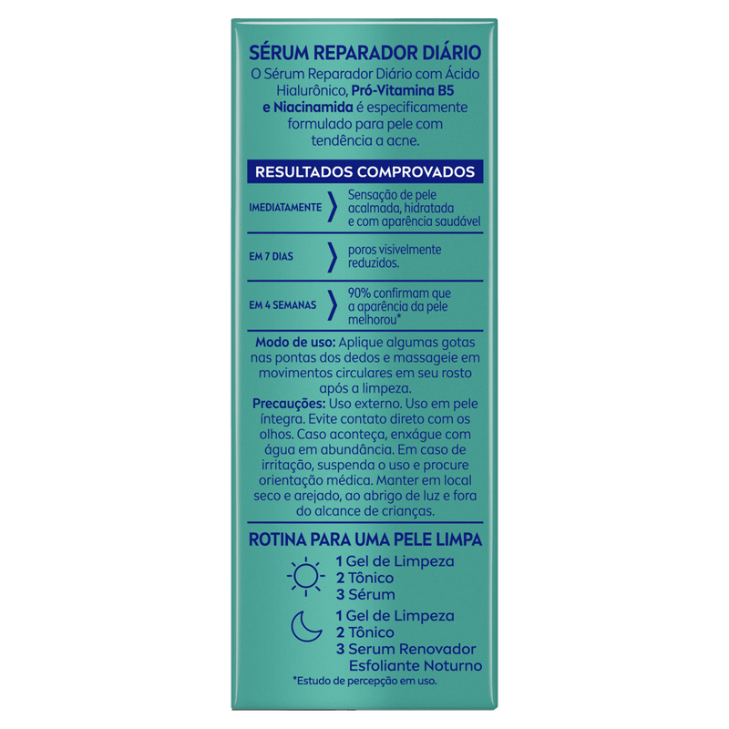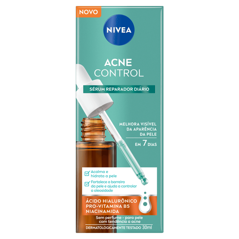 O Nivea Sérum Reparador Diário Acne Control foi desenvolvido especialmente para peles com tendência à acne, proporcionando um cuidado diário que promove uma pele saudável e equilibrada. Sua fórmula exclusiva combina ácido hialurônico, pró-vitamina B5 e niacinamida, ingredientes conhecidos por melhorar a aparência da pele e combater a acne.