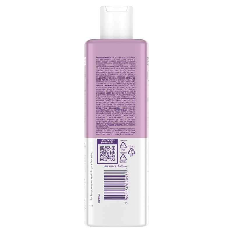 O Shampoo Antiqueda Clear Derma Solutions é um shampoo antiqueda que aumenta a ancoragem dos fios no couro cabeludo reduzindo a queda de cabelo. Sua fórmula é potencializada com vitaminas antioxidantes A, C, E e B3, para cabelo e couro cabeludo mais saudáveis.