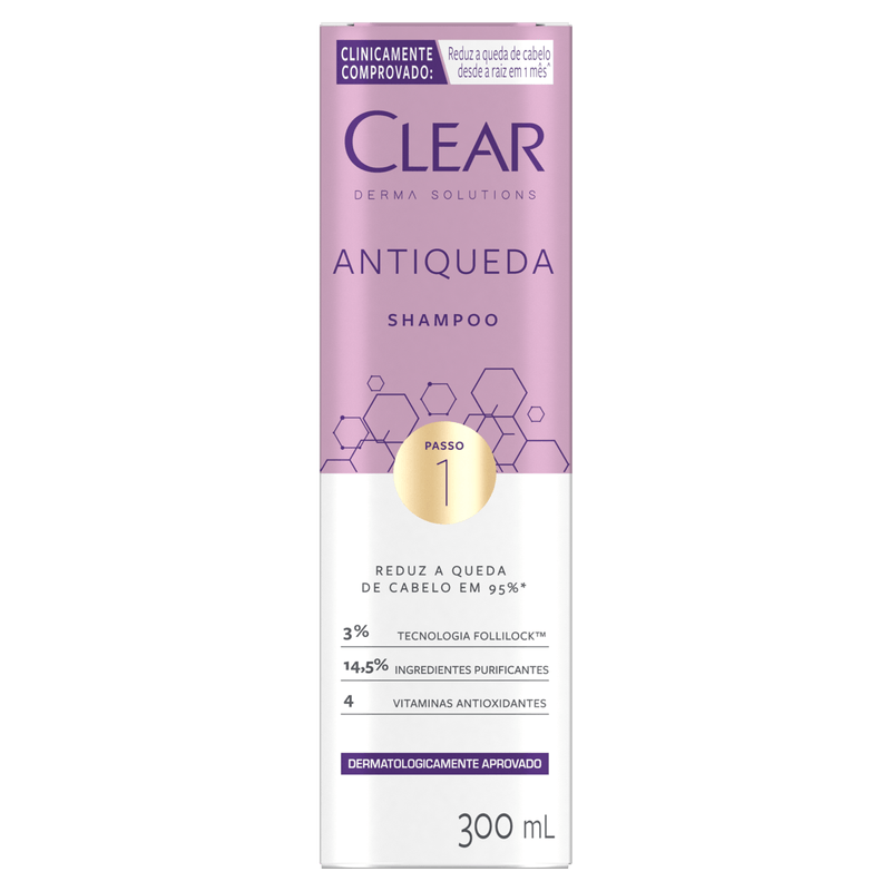 - Passo 1: Shampoo Antiqueda Clear Derma Solutions.