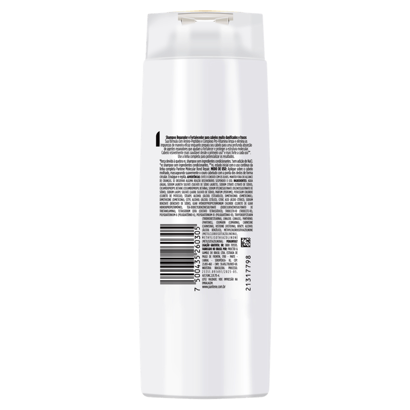 Composição: Água, sulfato de sódio laurete, citrato de sódio, cocamidopropil betaína, xilenossulfonato de sódio, lauril sulfato de sódio, perfume, cloreto de potássio, álcool estearílico, dimeticonol, dimeticona, álcool cetílico, ácido cítrico, benzoato de sódio, cloreto de guar hidroxipropiltrimônio, dodecilbenzenosulfonato de trietanolamina, edetato tetrassódico, tridecete-10, poliquatérnio-6, poliquatérnio-10, triidroxiestearina, linalol, pantenol, cumarina, carnosina, histidina, álcool benzílico, metilcloroisotiazolinona, metilisotiazolinona.