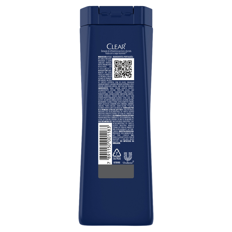 O Shampoo Anticaspa Clear Men Ice Cool Menthol, foi desenvolvido para homens, porque o couro cabeludo do homem está propenso a caspa. Formulado com Bio Booster, a nova tecnologia inteligente que ajuda a ativar a proteção natural do couro cabeludo e acaba com a caspa recorrente*. Este shampoo anticaspa com mentol refrescante, deixa o couro cabeludo com sensação de refrescância que dura o dia todo. O shampoo Ice Cool Menthol é indicado para homens com o couro cabeludo oleoso e irritado. Ele protege o couro cabeludo, nutrindo-o, além de proporcionar uma sensação intensa de refrescância e remoção da oleosidade, para um visual perfeito. Aplique no cabelo molhado, massageie o couro cabeludo e enxágue. Repita. Para melhores resultados, use diariamente. Quanto mais se esforça, mais seu corpo irá protestar. O suor e a umidade em um dia intenso ou após a prática de esportes, podem deixar você com um couro cabeludo com coceira, o que possivelmente ajudará no aparecimento da caspa. Em Clear Men, queremos inspirar as pessoas a mostrar ao mundo do que são feitas, ajudando-as a se tornarem resilientes, eliminando ansiedades e dúvidas. Que tenham a confiança para dar o seu melhor! Por isso, os Shampoos Clear foram desenvolvidos para fortalecer o couro cabeludo e acabar de vez com a caspa, além de proporcionar uma sensação refrescante que dura o dia todo. Clear, nada a esconder! *livre de escamas visíveis com o uso regular.