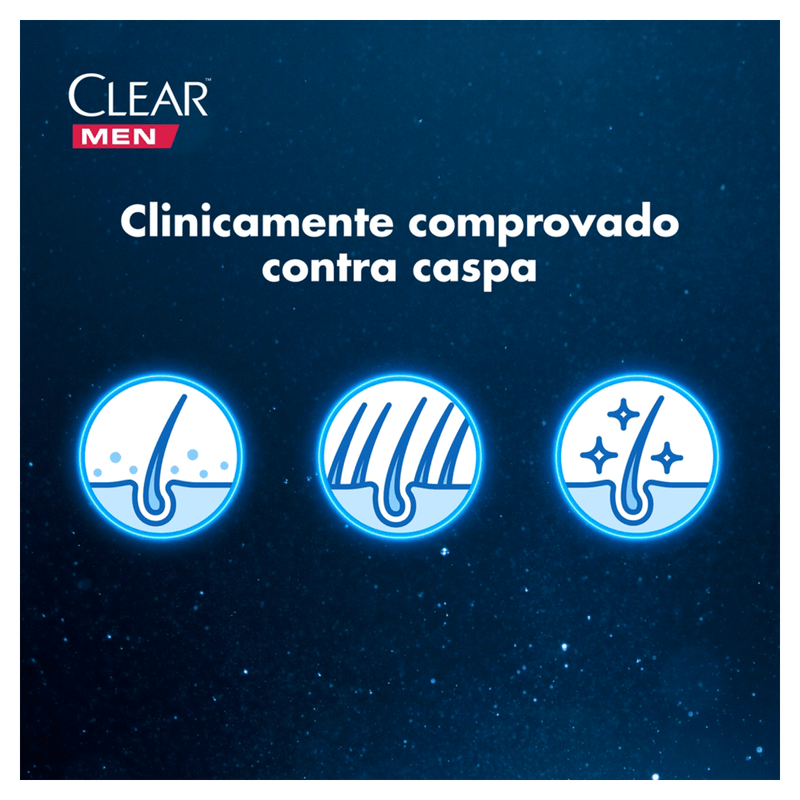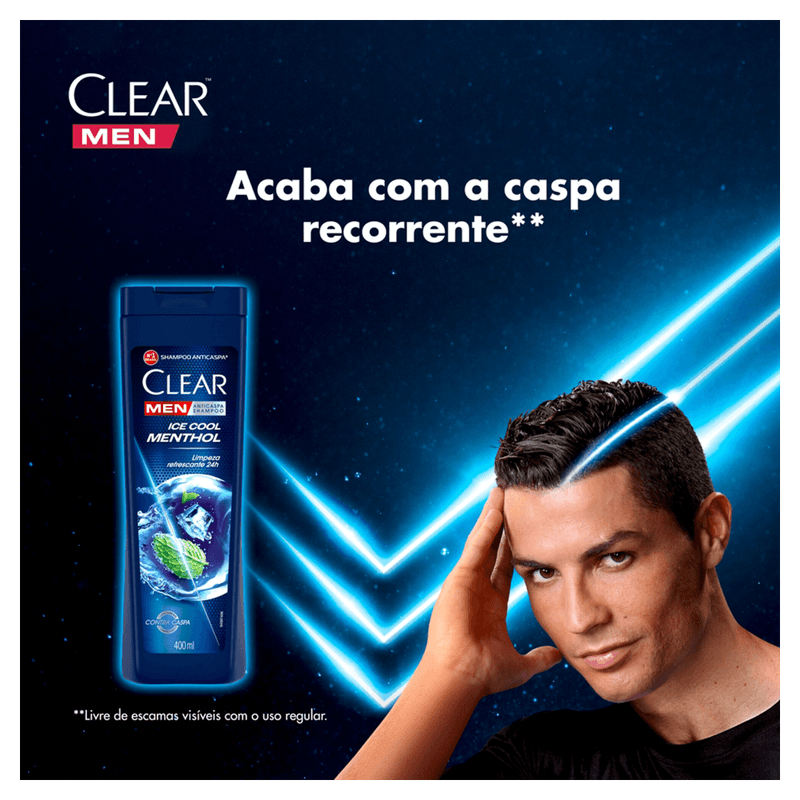 • O Shampoo Anticaspa Clear Men Ice Cool Menthol foi desenvolvido para homens, pois o couro cabeludo do homem está mais propenso a caspa