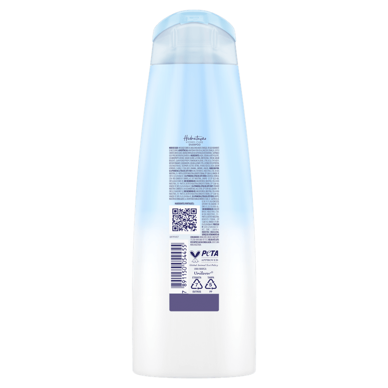 O Shampoo Dove Hidratação Intensa com Infusão de Oxigênio é a nova geração de hidratação da linha Dove Nutritive Solutions, que nutre profundamente o cabelo deixando-o mais leve e suave. Graças a fusão de moléculas de oxigênio aos ingredientes condicionantes, esse shampoo proporciona hidratação intensa com mais leveza. Ideal para cabelo danificado e enfraquecido, a fórmula do shampoo Dove Hidratação Intensa deixa o cabelo hidratado, com corpo e movimento natural*. Formulado com Infusão de Oxigênio, o shampoo Dove nutre os cabelos sem pesar, deixando-os macios e com volume natural. O Shampoo Hidratação Intensa pode ser usado diariamente e em qualquer fio: cabelo ondulado, cacheado, liso, crespo, tingido, curto, longo, de todas as formas, deixando-o bonito e saudável a cada lavagem. Para usar este shampoo, basta massajar sobre os cabelos molhados e enxaguar. Aplicar novamente se necessário. Use toda a linha Dove Hidratação Intensa para potencializar os resultados - Shampoo Dove Hidratação Intensa com Infusão de Oxigênio e Condicionador Dove Hidratação Intensa com Infusão de Oxigênio. Todos os produtos Dove são livres de crueldade animal e certificados pela PETA. Globalmente, a Dove não faz testes em animais em nenhum lugar do mundo. *Com o uso de shampoo e condicionador Dove Hidratação Intensa comparado com shampoo sem ingredientes condicionantes.