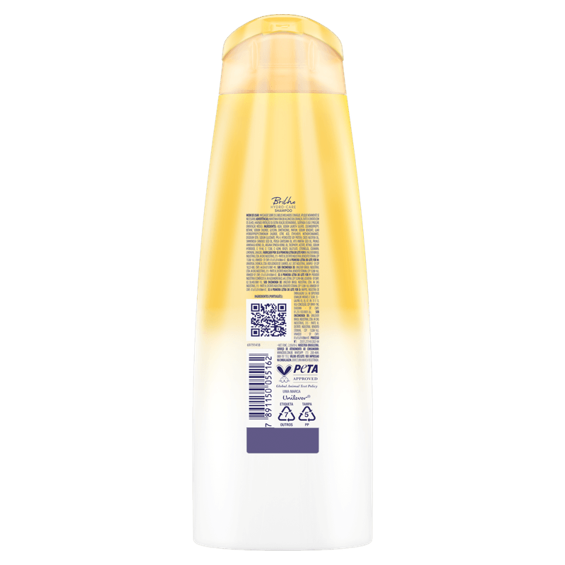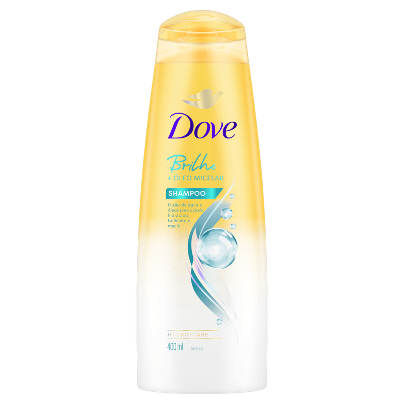 Modo de usar: Molhe os cabelos, aplique o shampoo nos fios molhados e massageie suavemente o couro cabeludo até formar espuma. Enxágue completamente e, se necessário, reaplique. Para melhores resultados, utilize junto com a linha Dove Brilho + Óleo Micelar.