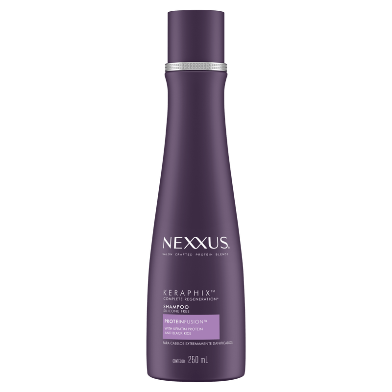 O Shampoo Nexxus Protein Fusion Keraphix é ideal para cabelos altamente danificados, sem vida e sem brilho. Sua fórmula exclusiva com blend de Proteinfusion, queratina e arroz preto limpa suavemente enquanto penetra na fibra capilar, iniciando um processo completo de regeneração e fortalecimento dos fios expostos a tratamentos químicos e agressões mecânicas.