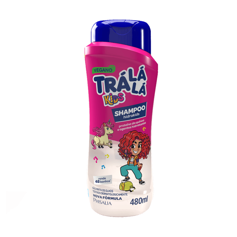 Shampoo Infantil HidraKids em frasco de 480ml, indicado para a higiene delicada do cabelo e couro cabeludo de bebês e crianças. Produto formulado para limpeza diária, com textura líquida e desenvolvido para minimizar irritação ocular.